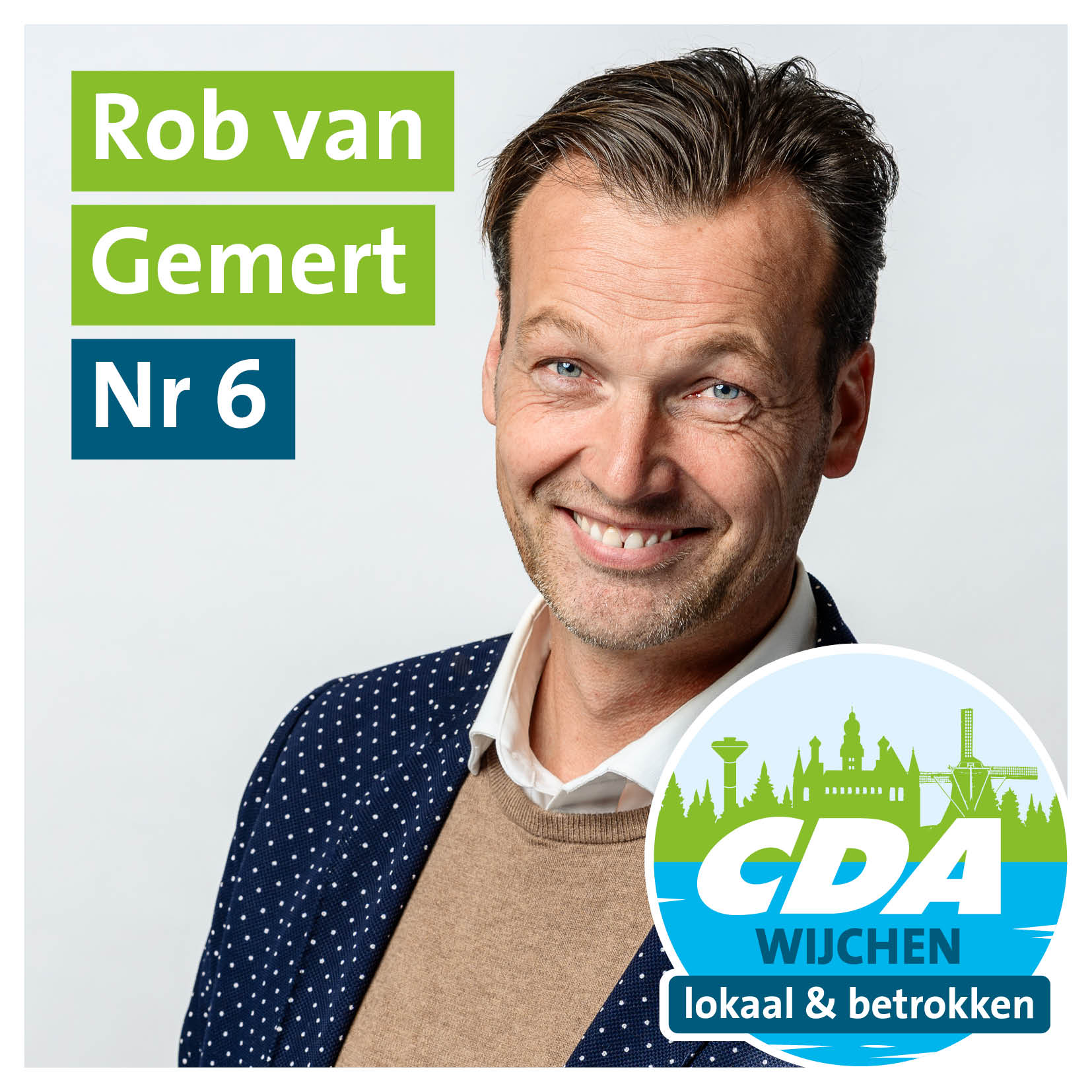 Nummer 6 is Rob van Gemert. Rob is opgegroeid op de Kraaijenberg en woont nu met zijn vrouw en twee kinderen op de Aalsburg. Veel mensen kennen Rob nog van zijn bijbaan bij Lepoutre of het voetballen bij Niftrik en AWC. Rob houdt van reizen, padel en wielrennen. Hij is al jarenlang actief als coach bij MHC Wijchen en eerder bij AWC, waar hij ook hielp bij het opzetten van het 7×7-voetbal. Rob heeft o.a. bij Planon gewerkt. Inmiddels is hij actief als ondernemer: hij is mede-eigenaar van Famas, leverancier van FMiS-oplossingen en runt daarnaast een consultancybedrijf.